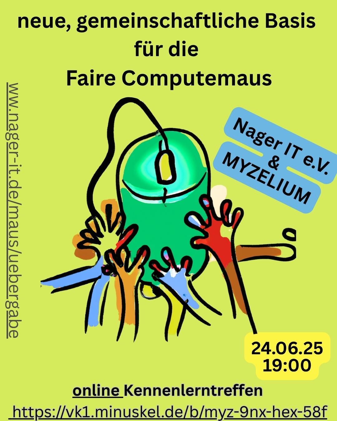 Nager IT als bisheriger Träger der Fairen Maus und das MYZELIUM als Unterstützung der Transformation laden dich dazu sehr herzlich ein.